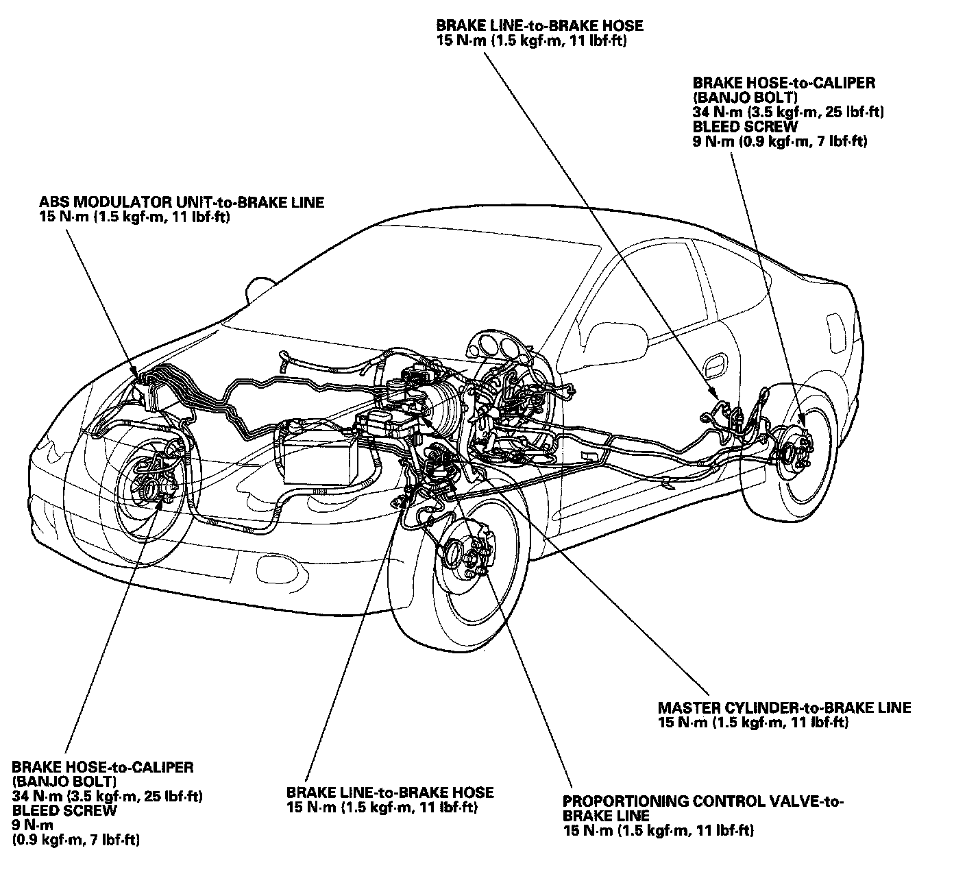 2. Check the brake lines for damage, rusting, and leakage. Also check for bent brake lines.