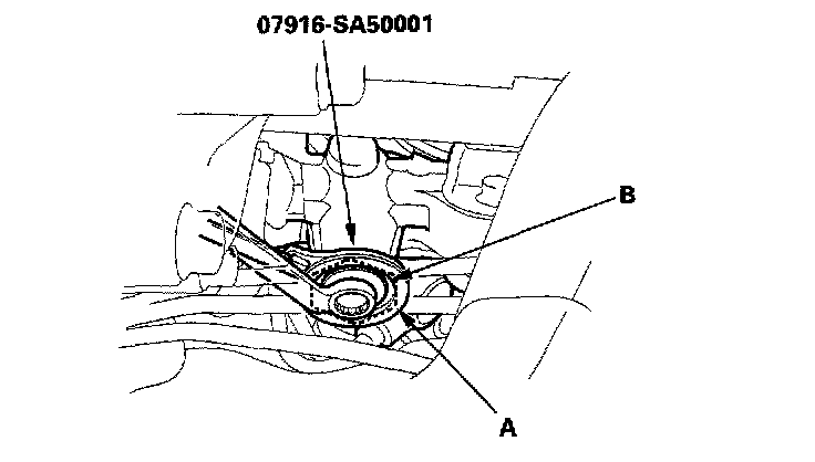 6. Loosen the rack guide screw locknut (A) with the special tool, then remove the rack guide screw (B).