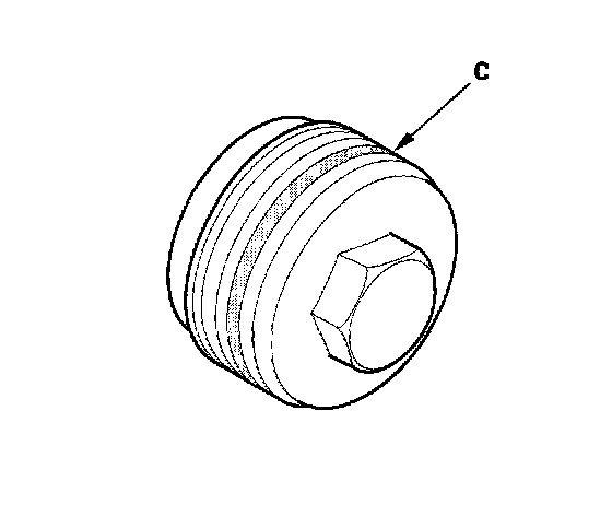 7. Remove the old sealant from rack guide screw, and apply new sealant to the middle of the threads (C). Loosely install the rack guide screw on the steering gearbox.