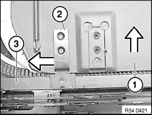 Press headliner (1) to right against springs and at same time detach sliding member (2) from guide duct (3) and headliner (1).