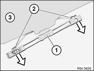Pull sliding member (1) at front/rear off springs (2) of headliner (3).