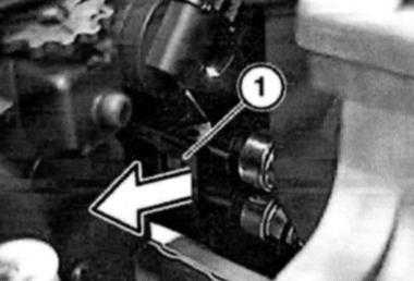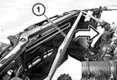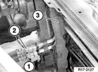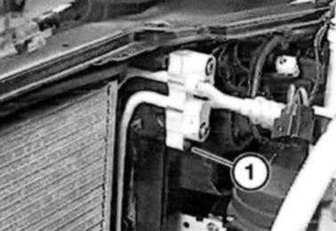 Release lock (1). Pull cooling loop of power steering towards rear out of module carriers.