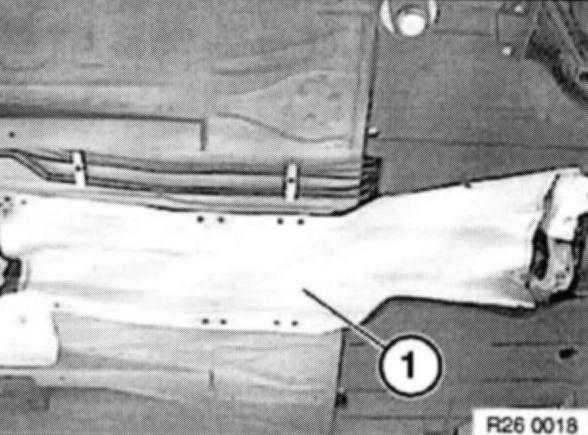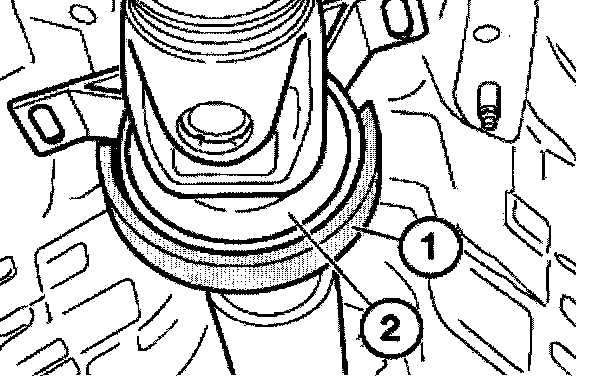 Caution: Remove butylene tape already attached to center bearing. Clean adhesive area on center bearing and on body. Then coat adhesive area on body with mineral oil. This coating with oil is necessary to facilitate insertion of the sticky butylene tape in the propeller shaft tunnel. This prevents the butylene tape from being deformed.