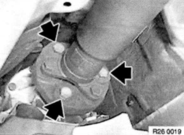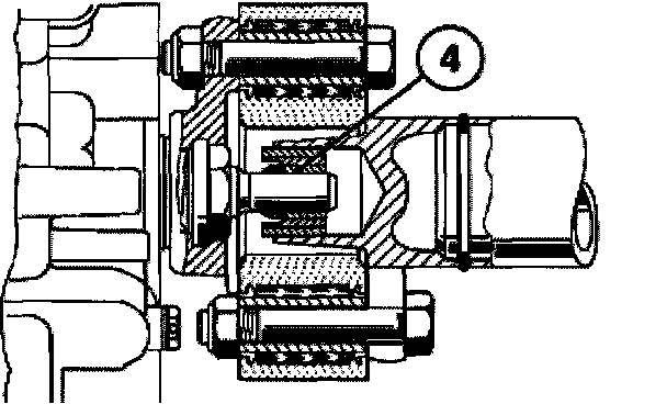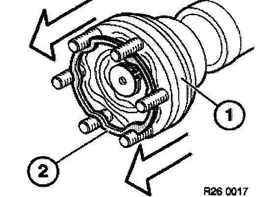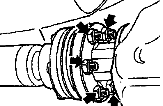 Caution: The constant-velocity joint must not be compressed during assembly because the grease fill can force away the sealing ring, leading to leakage from the constant-velocity joint. By alternately tightening 2 opposing nuts, draw constant velocity joint uniformly into drive flange. Then tighten down the remaining nuts.