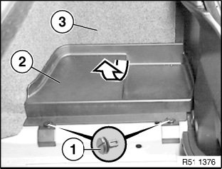 Release expansion rivets (1) and remove tray (2).