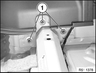 Release nuts (1) on inside and remove shock absorber.