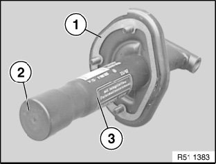 If necessary, fit a new gasket (1) and a new cover (2) to shock absorber (3).