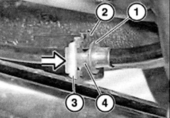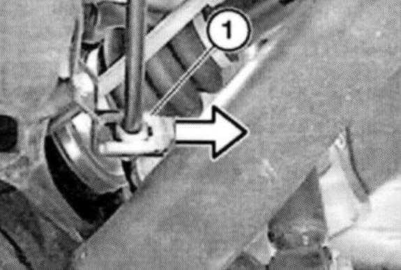 Pull lug of brake hose (1) in direction (2) out of fixture and remove sideways in direction (3) out of fixture.