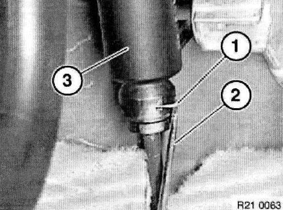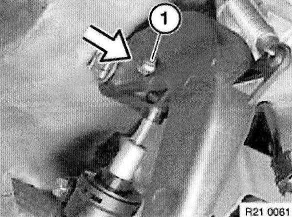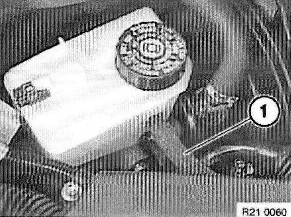 Remove the brake fluid up to the supply hose of the clutch hydraulics (1). For this purpose, use only a vacuum pipe that is exclusively used for removing brake fluid.
