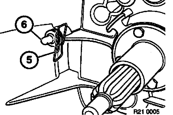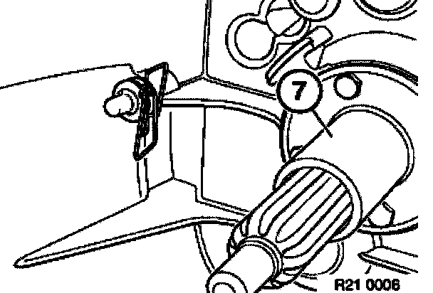 Check spring clip (5) and ball stud (6) for damage and replace if necessary.