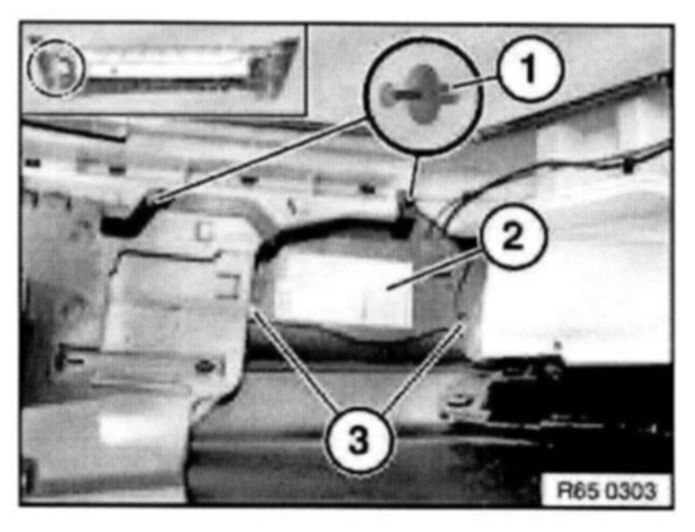 Feed TV bumper antenna (2) out of guides (3) and remove.