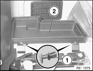 Release expansion rivets (1) and remove tray (2).