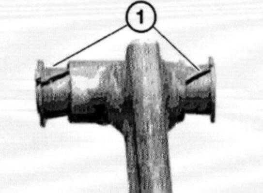 Pull bearing bushing (1) out of brake pedal and press to left.