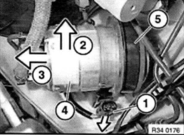 Remove pre-boost pump (4) in direction 3 from bracket (5).
