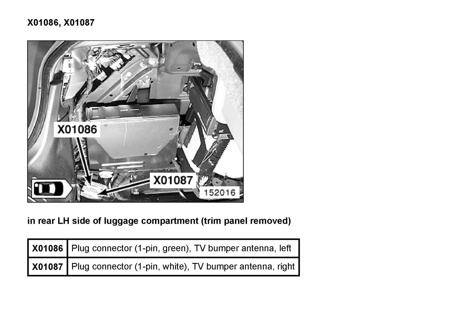 X01086 Connector, TV Bumper Antenna, Left