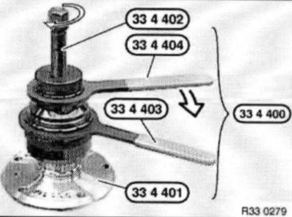 According to outside dia. of bearing inner race, special tool 33 4 401 with: