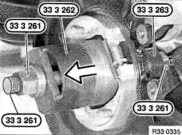 Remove wheel bearing with special tool 33 3 261 / 262 / 263.