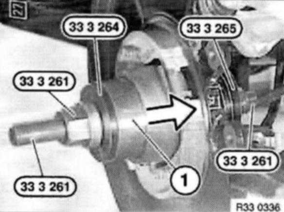 Draw in drive flange with special tool 33 3 261 / 262 / 263.