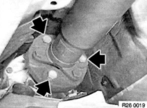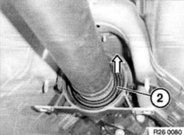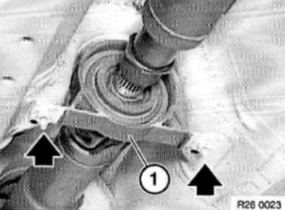 Note: To protect universal joints, tie back propeller shaft in area of center bearing.