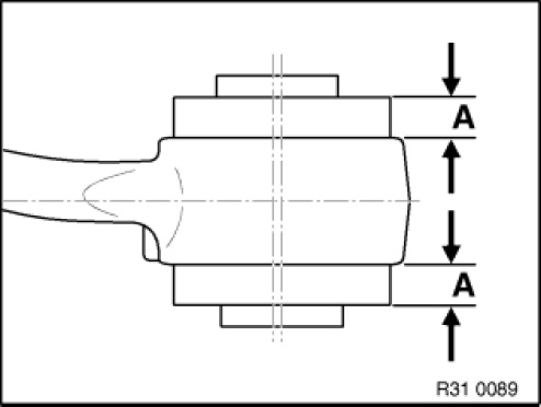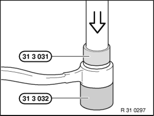 NOTE: Special tool 31 3 031 must be exactly flush with rubber mount bush.