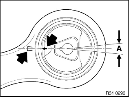 Align rubber mount by way of arrow to marking on tension strut and press in. The deviation must not exceed ± 5°.