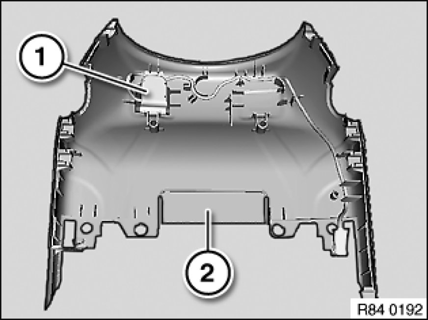 Make sure hands-free microphone (1) is correctly engaged on steering column trim (2).
