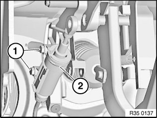 Release screws (1) and gently press clutch master cylinder (2) to one side.