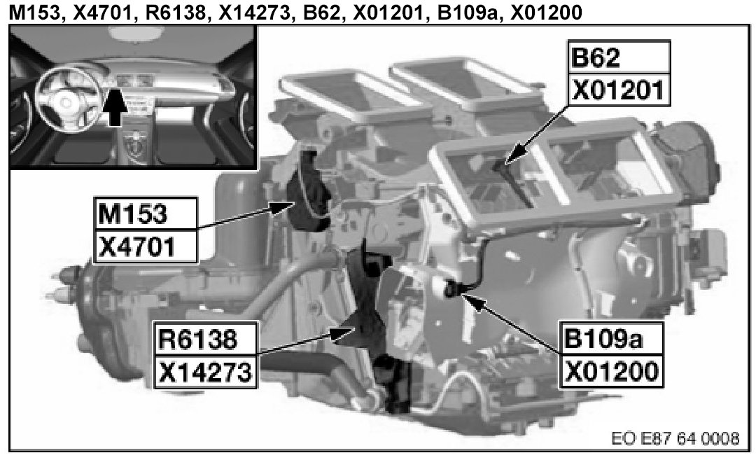 M153, X4701, R6138, X14273, B62, X01201, B109a, X01200 (IHKA Integrated Automatic Heating/Air-Conditioning)