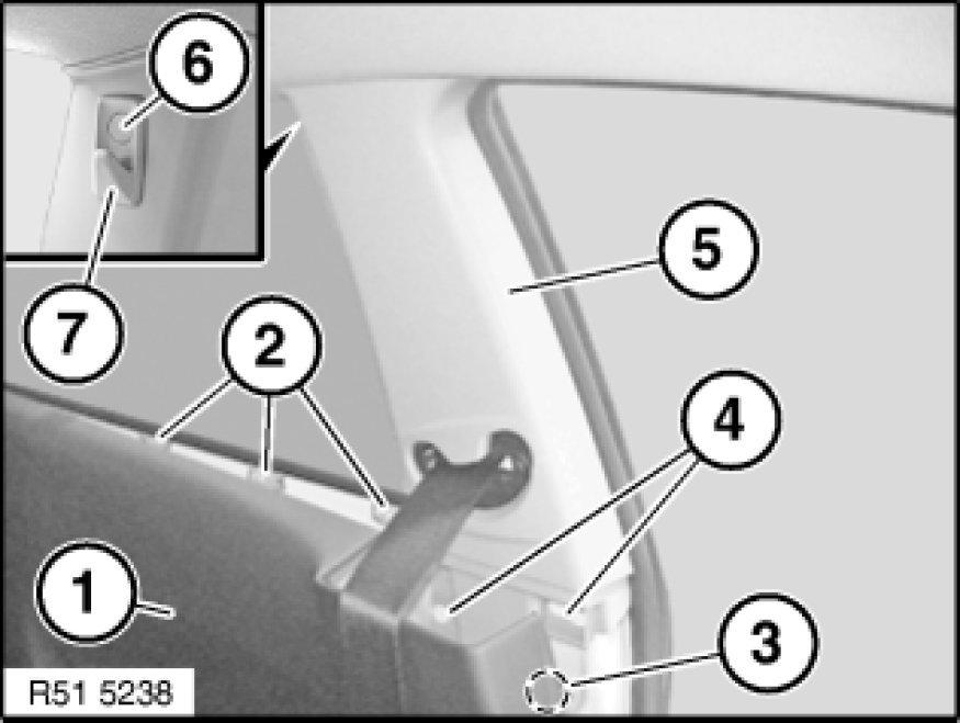 Release trim panel (5) at clips (4) and remove in downward direction.