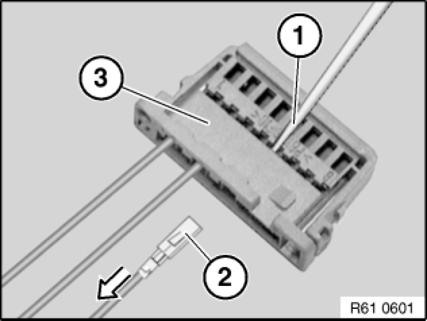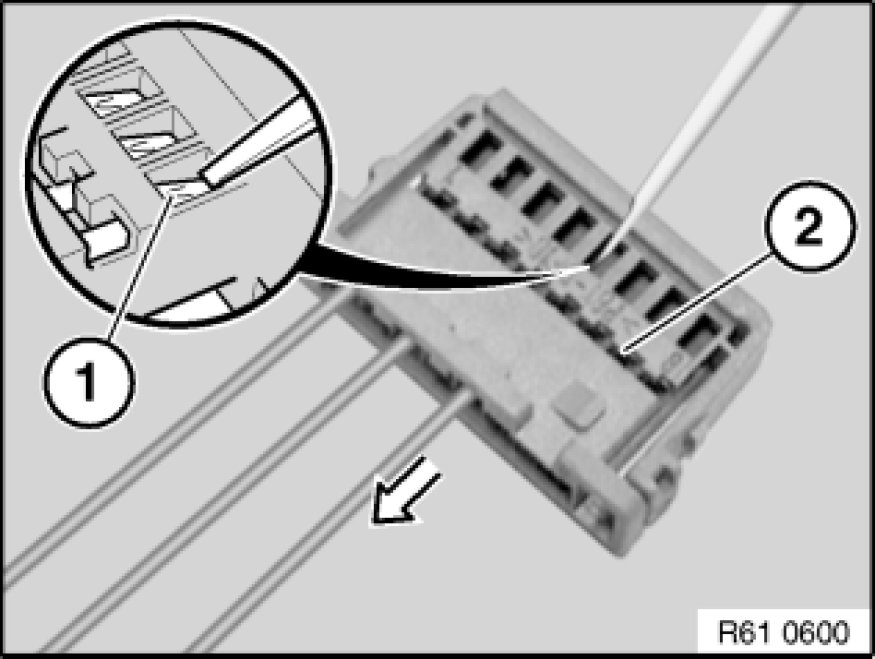 Pull wire with socket contact in direction of arrow as far as secondary lock (2).