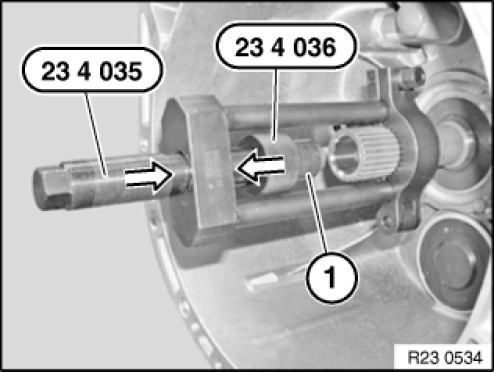 Press in grease with grease gun 23 4 040 until roller bearing is disengaged from drive shaft.