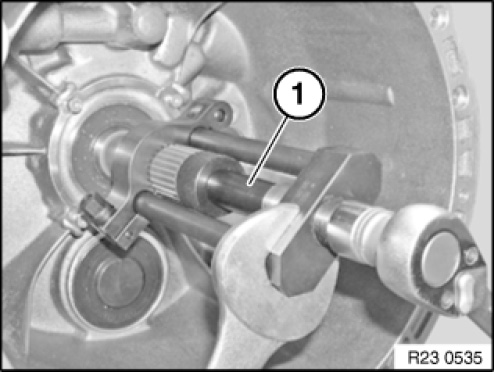 Install special tool 23 4 031 in front of drive shaft spline teeth.