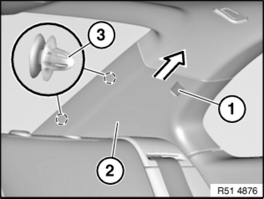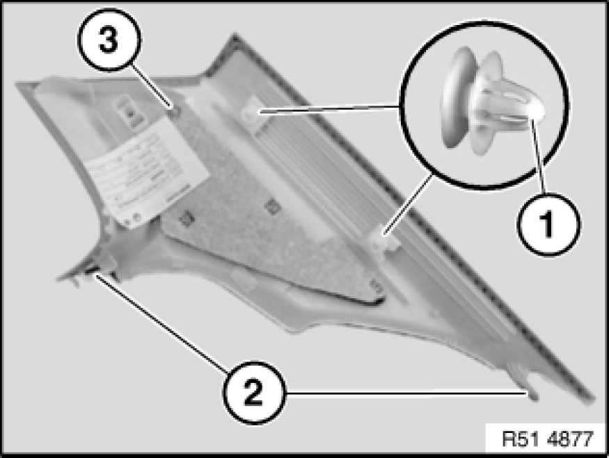 51 43 251 - Removing and installing/replacing trim panel for left or right rear roof pillar (C-pillar)