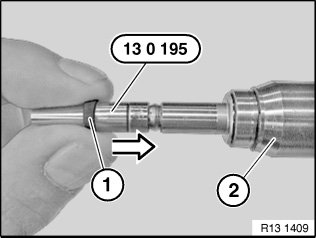 Slide new PTFE sealing ring (1) onto mounting taper 13 0 195 .