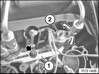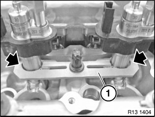 - Clean contact surfaces of uncoupling elements (2) in cylinder head. l Replace uncoupling element (2).