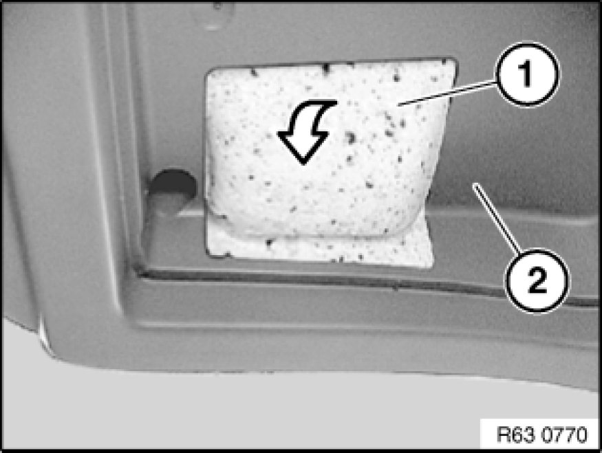 Fold foam (1) in direction of arrow out of lower rear lid panel (2).