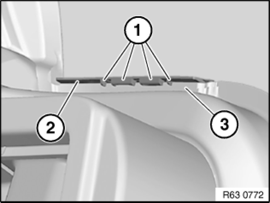 Position lugs (1) of rear light (2) exactly over side edge of rear lid (3).