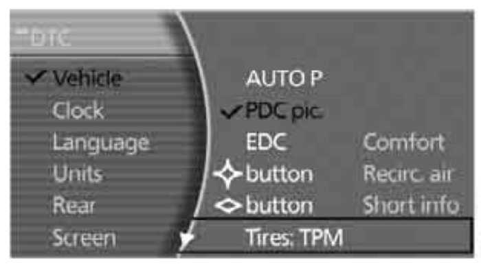 4. Select "Tires: TPM" and press the controller
