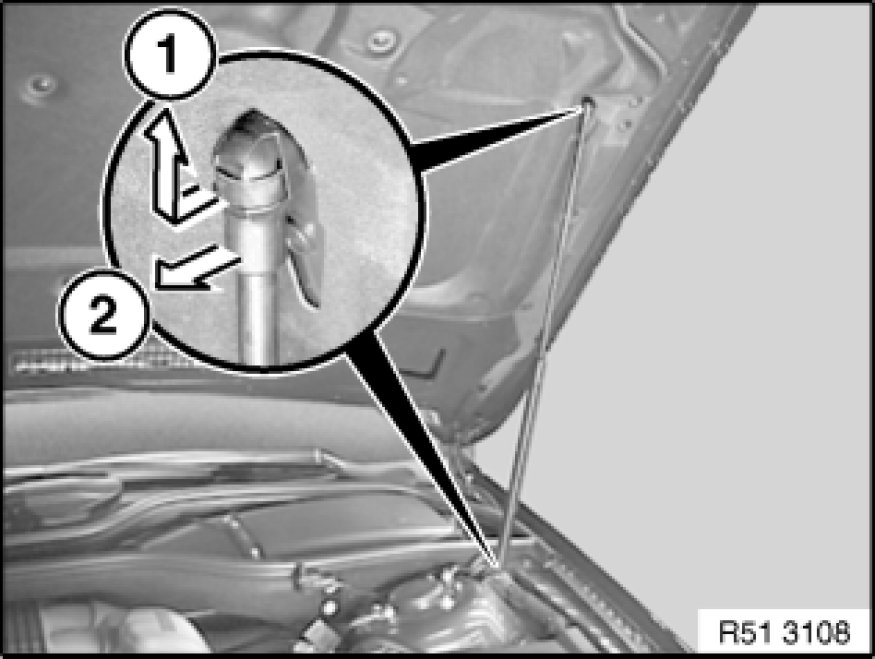 51 23 265 - Removing and installing/replacing left or right gas strut for engine bonnet/hood