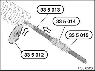 Center special tools 33 5 011, 33 5 012, 33 5 013, 33 5 014, 33 5 015 to achieve the greatest possible contact surface with the coil spring.