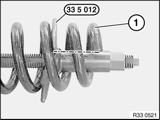 Bottom end of coil spring (1) must be flush with opening of spring cup 33 5 012 (see dotted-dashed line)!