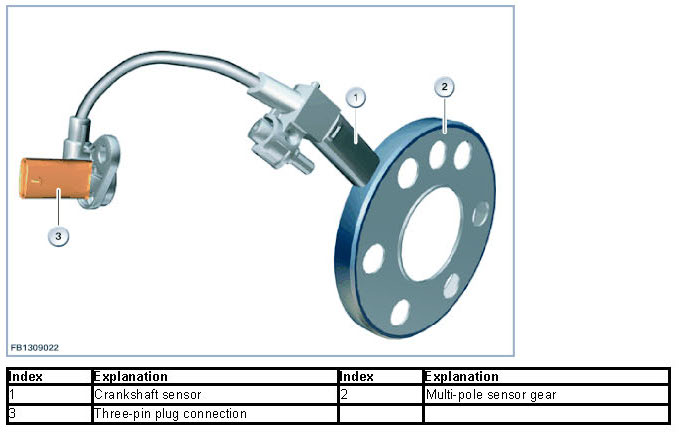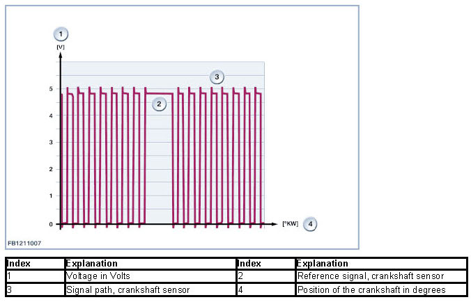 The signal from the crankshaft sensor means that the Digital Engine Electronics (DME) evaluate the crankshaft acceleration. The crankshaft acceleration provides an indication of the combustion quality of individual cylinders.