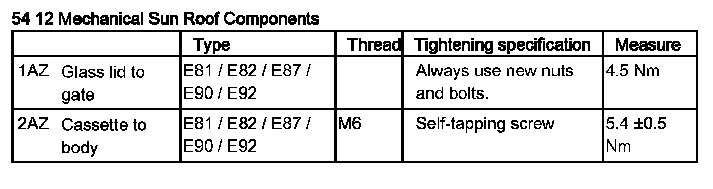 54 12 Mechanical Components of Sun Roof