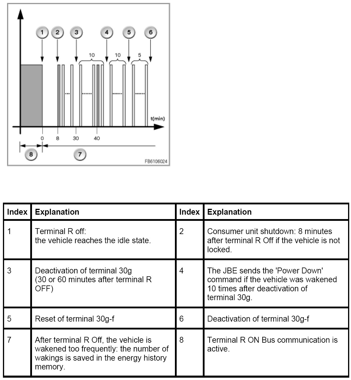 The events in the case of too many wakings are described below. In the event of a fault, all the measures serve to ensure the starting capability of the vehicle and for diagnosis if the fault has caused a flat battery.