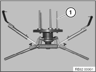 In order to avoid damaging the front side panel during the "Max. steering angle" drive-in routine, make sure the pickups are removed from the quick clamping holders/quick-clamping units during output and input alignment. In the process do not detach the connecting cable from the pickups or the rotary plates.