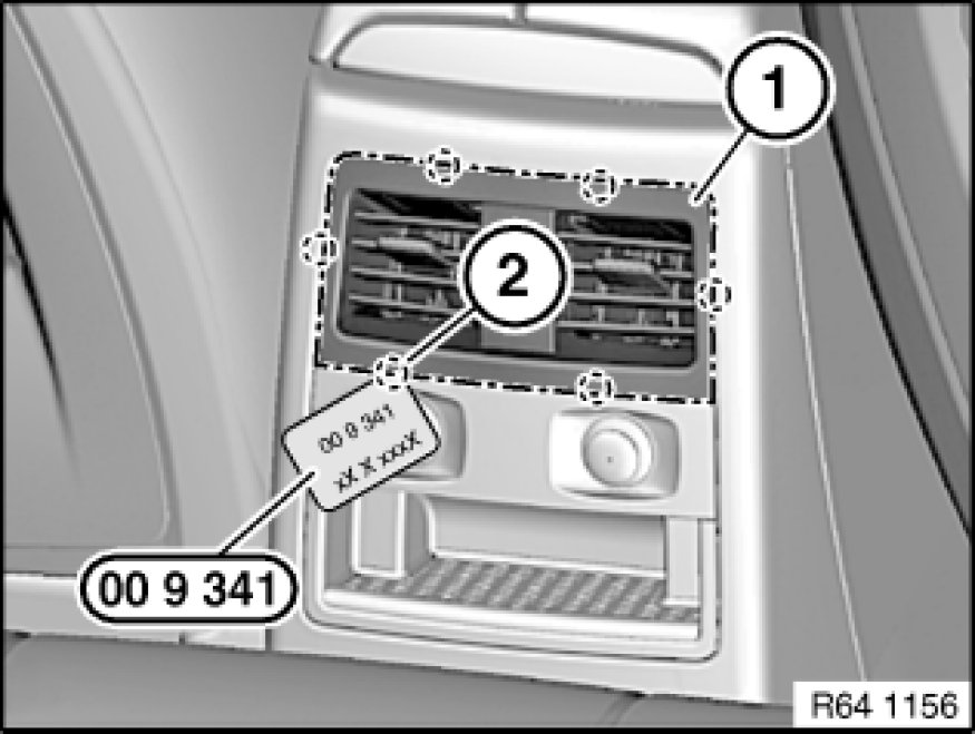 Lever out rear compartment fresh-air grille (1) with special tool 00 9 341 at retaining points (2).