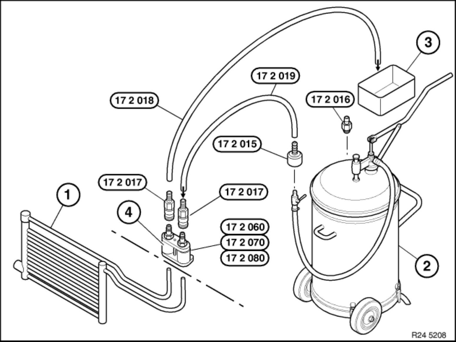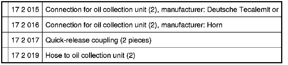 Connect connecting line 17 2 019 17 2 010 Set of Adapters from the oil collection unit with the quick-release coupling.