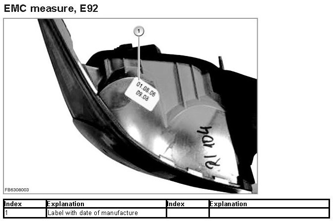 changed electronics in the outer tail lights mean that disturbances in VHF and DAB reception can occur. This concerns tail lights with date of manufacture between 30.05.2007 and 17.12.2007. The date is indicated on the top of the tail light (see illustration below).