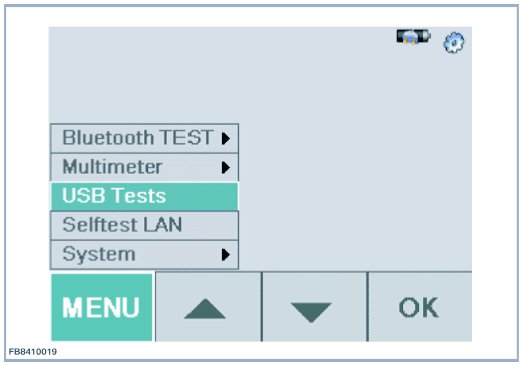 Open up the menu on the IMIB by pressing the MENU button. Select USB TESTS using the navigation buttons, and confirm with the OK button.