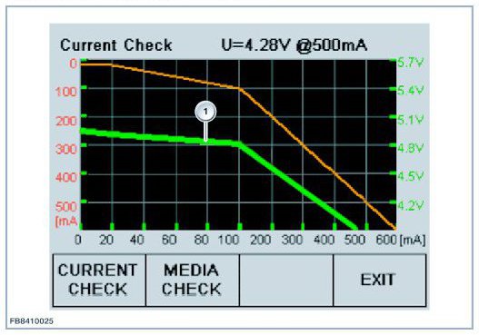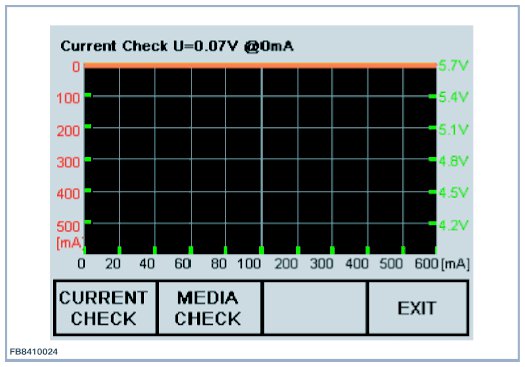 During the test, the load current of the USB connection is increased in steps, and the voltage is measured at the USB connection at the same time. These values are shown graphically on the display of the IMIB.